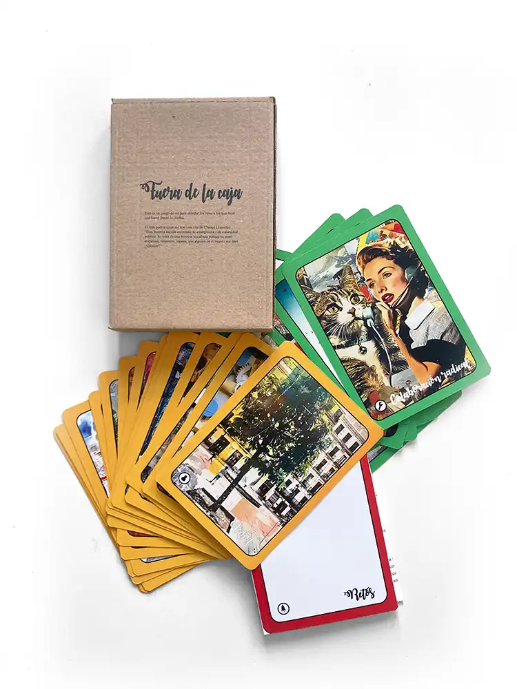 During the last session of the course, artist Raquel Congosto gifted participants with a game card. The game invited them to invite think “Outside the Box” (as the game was named). It consisted in three feature: a small booklet with instructions and two sets of cards. In the booklet, one could write down the challenges for the game to be played—that is, the (bureaucratic) endeavors that participants had over the table (i.e. their bureaux). Out of the two set of cards, the first one included fourteen ‘Characters’, which were urban human and non-human actors ‘à la ANT’ (Actor-Network Theory): a tree, a sewage system, an elder, a mum with kids, a file, a car, a neighbourhood party, and so on. Each had their respective characteristics. The second set were ‘Tools’, and were created from the ten lectures that the course had offered. From those lectures, Raquel proposed a world in which different actors in collaboration with others and combining their specific characteristics could solve challenges choosing the different paths offered by the tools. Heat, as an invisible bureaucratic problem, was at the heart of all those challenges.