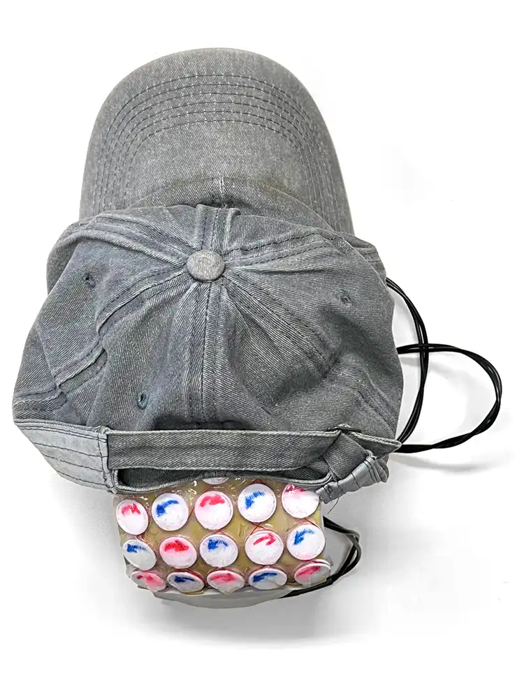 I was given the hat to treat my very persistent migraines that hit me out of nowhere. I remember when they started, like an uncomfortable brain massage, stretching the muscles from inside my skull backwards. Accompanied by nausea, it sometimes lasts for weeks. No treatment works, and in a way, I accepted is as a part of me.
