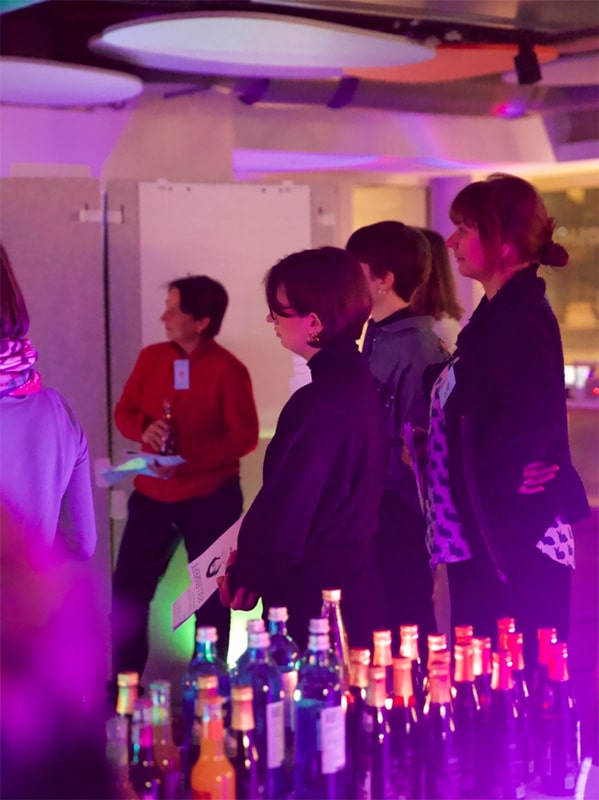 The setting is Dresden in 2040, where a retrospective on the early development of smart robotics is about to open. The evening’s host, played by one of the game organisers, opens the event with a welcome speech and a real buffet when the game begins. The lights dim to red, and an alarming siren sounds throughout the space. The sense of emergency intensifies when COSIMA, the fictive city’s AI, announces that the 6G network, the ICT backbone of Silicon Saxony, has failed. The prerecorded voice of the AI further suspects that the blackout was the result of sabotage in the immediate vicinity of the exhibition space. Everyone in the room is a potential suspect.